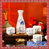 青花酒具是运用天然钴料在白泥上进行绘画装饰,再罩以透明釉,然后在高温1300摄氏度上下一次烧成,使色料充分渗透于坯釉之中,呈现青翠欲滴的蓝色花纹,显得幽倩美观,明净素雅。青花是我国最具民族特色的瓷器装饰,是釉下彩瓷的一种,也是我国陶瓷装饰中较早发明的方法之一。清代龚轼在他的《陶歌》中这样称赞青花瓷:“白釉青花一火成,花从釉里透分明。可参造化先天妙,无极由来太极生”。