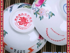 在给亲人祝寿时用上特意为其定制的瓷碗,上面写上祝福的话语,或寿星的照片,在宴席开始时具有独特的纪念意义,还可送给亲朋好友将是永久的纪念!寿碗的来历:“碗”谐音同“晚”,寓意延年益寿。大寿之日,给众邻亲戚送寿碗寿杯,以赠人们一个好兆头。据说,从前在参加老人寿辰时,有些讨寿者喝的酩酊大醉时,就将寿碗装进衣袋,或大抢出手,不仅拿寿碗,而且拿碗盏,此举主家并不责怪,反认为“有福有寿”。有的人宴后向主人讨要寿碗,也有主人主动赠庆寿者“寿碗”一对,使受赠者沾老寿星之福,俗说有“延年益寿”之兆,是一种美好的祝愿。